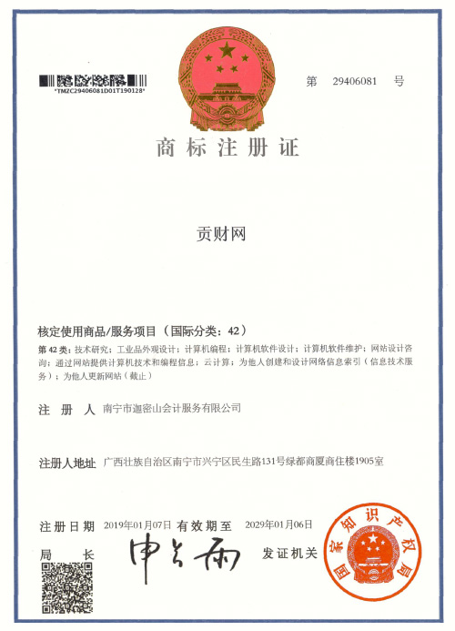 迦密山工商注冊(貢財(cái)42類)