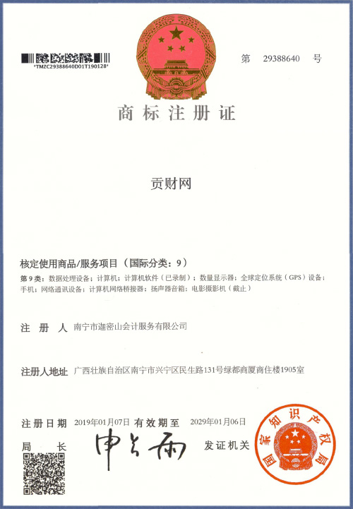 迦密山工商注冊(貢財(cái)9類)